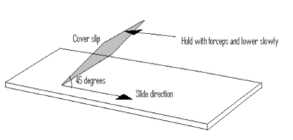 The correct technique (according to John) in making a wet slide for the microscope. Explained using MS paint.