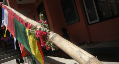 It was the nepali new year, so naturally we went to get a new bamboo for the new flag. The specification were straight and old. I spotted the perfect one and pointed out to the crew. But being nepali and local, they could not possibly let a foreigner choose with no previous experience of bamboo shopping. They spent ages looking at every single bamboo. Eventually settled on the one I pointed out ages ago. The kitchen kukri (an inward curved nepali blade) was used to hack down the bamboo.