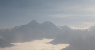 Mt. Everest or Sagarmatha is the peak on the left. That is the highest mountain on Earth.