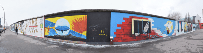 i stayed in a really “hip” hostel in the east side of Berlin. I have no idea what “hip” means in the context of a hostel, but I know that is the right word to describe it. The walk to Ostbahnhof (East Train Station) passed next to the East side of the Berlin Wall. One of the few remaining sections of the Berlin Wall that is still standing.