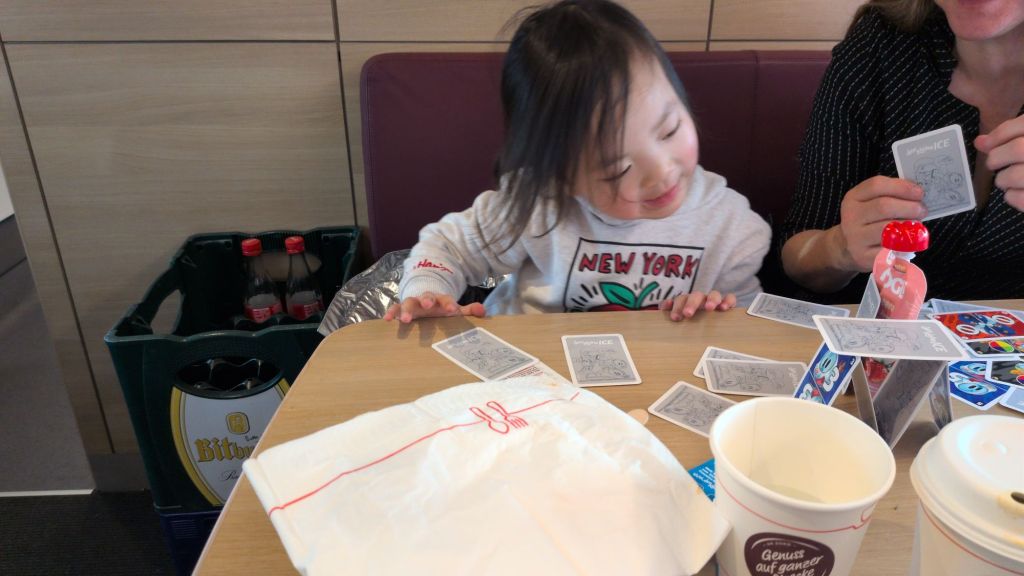 The second delay was on a train where we wanted to go to Dusseldorf. Fortunately for Sophia, yay! 2 hour delay! The lady next to her will play together. Nowadays, most people in this situation will go to their phone and wait begrudgingly for the train to get to the destination but for Suzanne today was not one of those days…